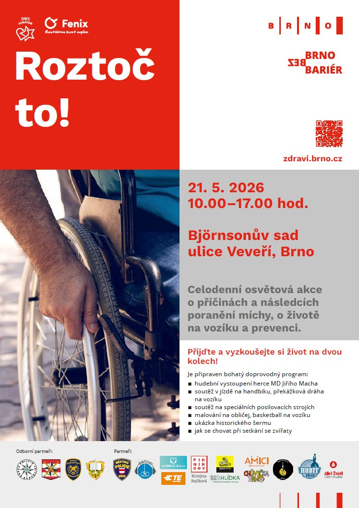 Připraveny budou zážitkové překážkové dráhy pro jízdu na vozíku, rozhovory s lidmi, které postihlo poranění míchy, soutěže na speciálních posilovacích strojích pro vozíčkáře, workshop na téma „Jak se chovat při setkání se zvířaty“ i drobné kvízy. Dozvíte se mimo jiné, jaké jsou nejčastější příčiny poškození míchy, jak nezvratitelné jsou jeho následky a jak těmto úrazům předcházet.