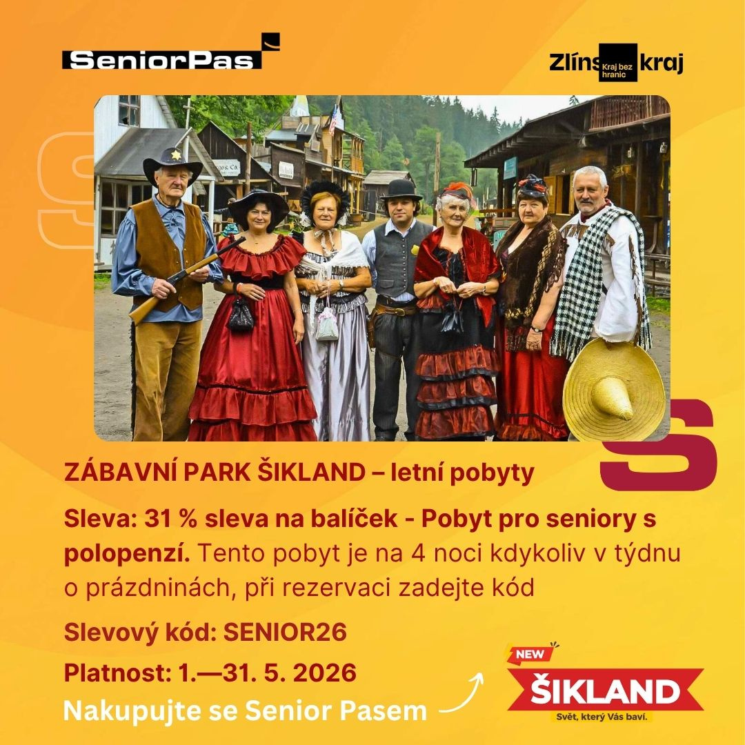 Seniorské pobyty v přírodním resortu Šikland nabízejí pohodlnou a bezpečnou dovolenou bez složitého cestování. Hosté oceňují klidné prostředí, přátelský personál a možnost volit si vlastní tempo - od odpočinku na terase až po nenáročné výlety či program ve westernovém městečku. Součástí pobytu je ubytování v komfortním hotelu, snídaně a večeře formou bufetu, permanentka do areálu, uvítací drink, káva s dezertem i sleva na vířivku. Díky přehlednému prostředí a společenské atmosféře se tu senioři cítí vítaní a skutečně si odpočinou.