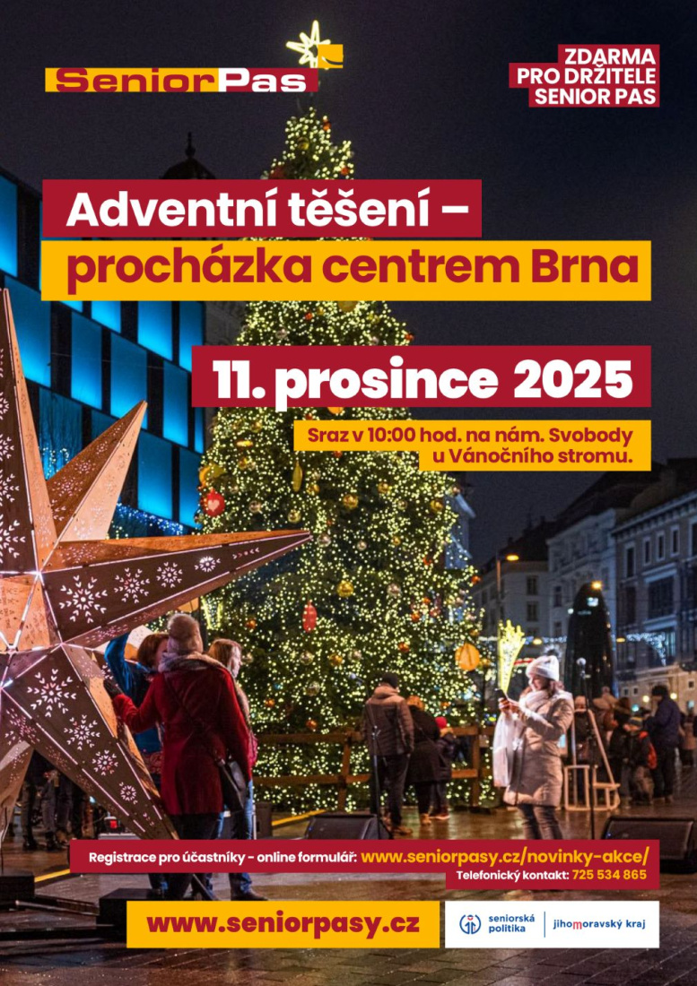 Užijeme si společně komentovanou procházku centrem Brna. Nasajeme adventní atmosféru a zkrátíme si čas čekání na jedno z nejkrásnějších období v roce.