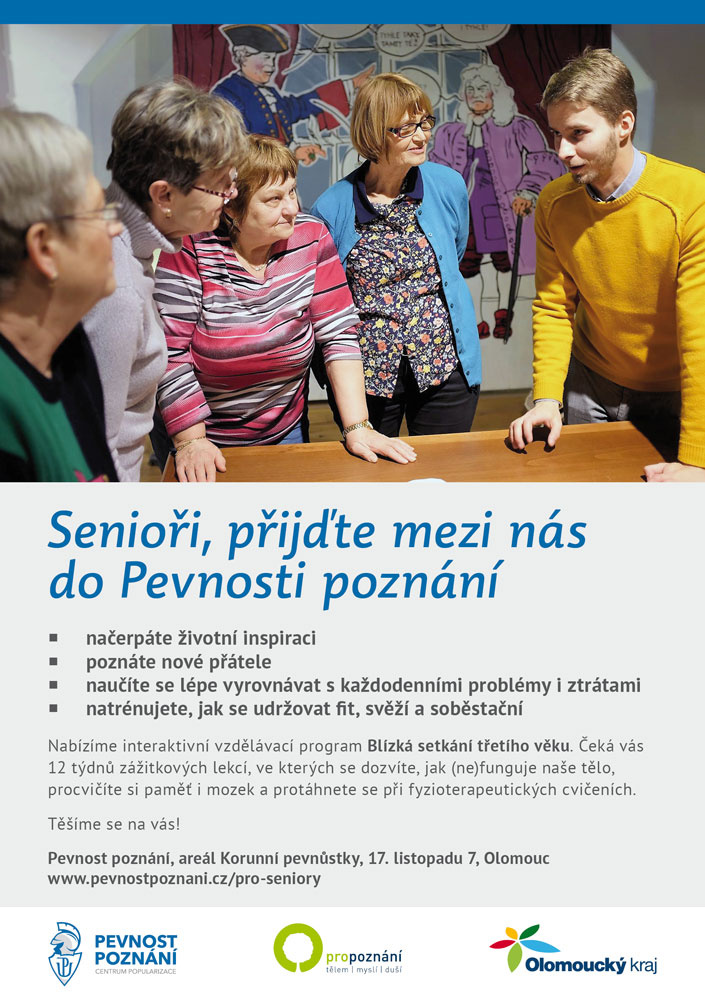 Přihlaste se do vzdělávacího cyklu Blízká setkání třetího věku v Pevnosti poznání. Program je určen všem seniorům, kteří chtějí zůstat v pohybu, mezi lidmi a otevření novým tématům.
