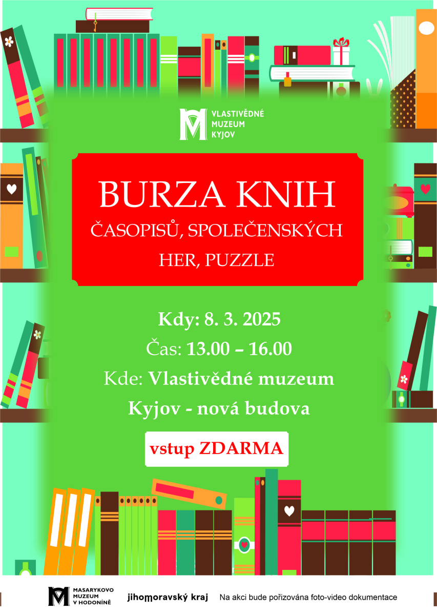 Srdečně vás zveme na Burzu knih, časopisů a společenských her! do nové budovy Vlastivědného muzea Kyjov - v sobotu 8. března od 13.00-16.00.