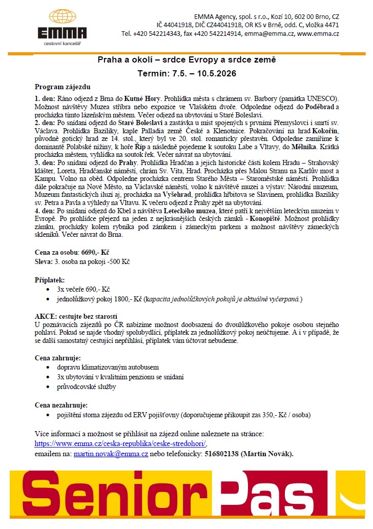 Vyrazte s CK Emma na cestu po Praze a okolí.