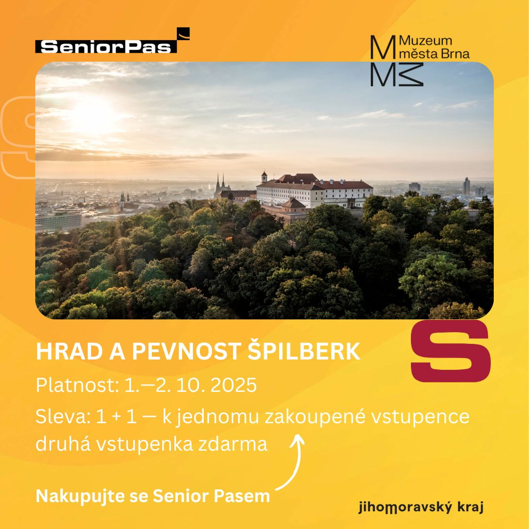 Načerpejte historii i klid v srdci Brna! Hrad Špilberk, dominanta města s bohatou minulostí pevnosti i slavného vězení, vás zve k objevování svých zákoutí. Projděte se po hradbách s krásným výhledem, navštivte expozice Muzea města Brna i výstavní prostory Galerie města Brna . Čeká vás jedinečný zážitek z architektury, umění a historie. Využijte zvýhodněné vstupné se Senior pasem a dopřejte si příjemný den na místě, kde se dějiny snoubí s odpočinkem a krásným výhledem na celé Brno.