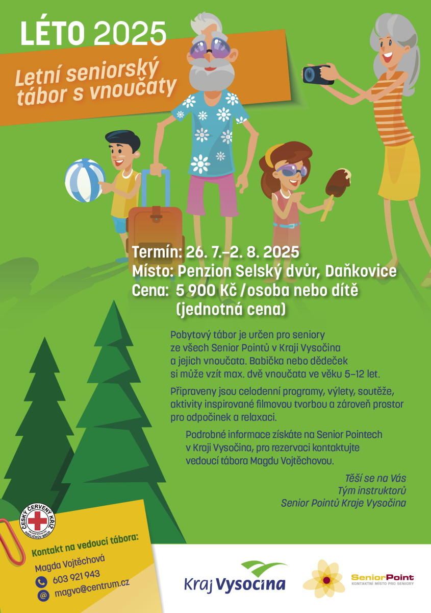 dovolujeme si vás informovat, že máme stále volná místa na Letní seniorský tábor a Letní seniorský tábor s vnoučaty, které pořádá Kraj Vysočina a Senior Pointy Kraje Vysočina.