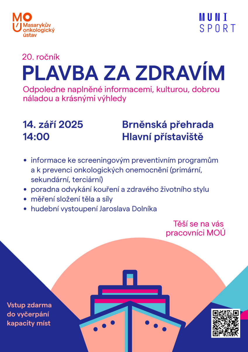 srdečně Vás zveme na jubilejní dvacátý ročník Plavby za zdravím, který se uskuteční v neděli 14. září 2025.