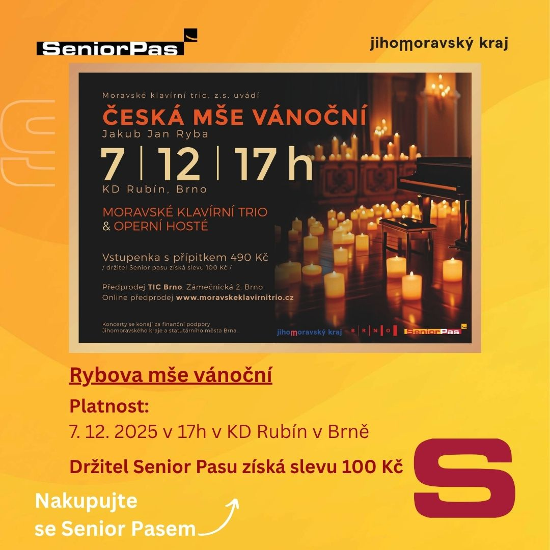 Moravské klavírní trio a 4 operní sólisté zahrají Českou mši vánoční Jana Jakuba Ryby, která Vás vtáhne do kouzelného světa vánočních melodií.