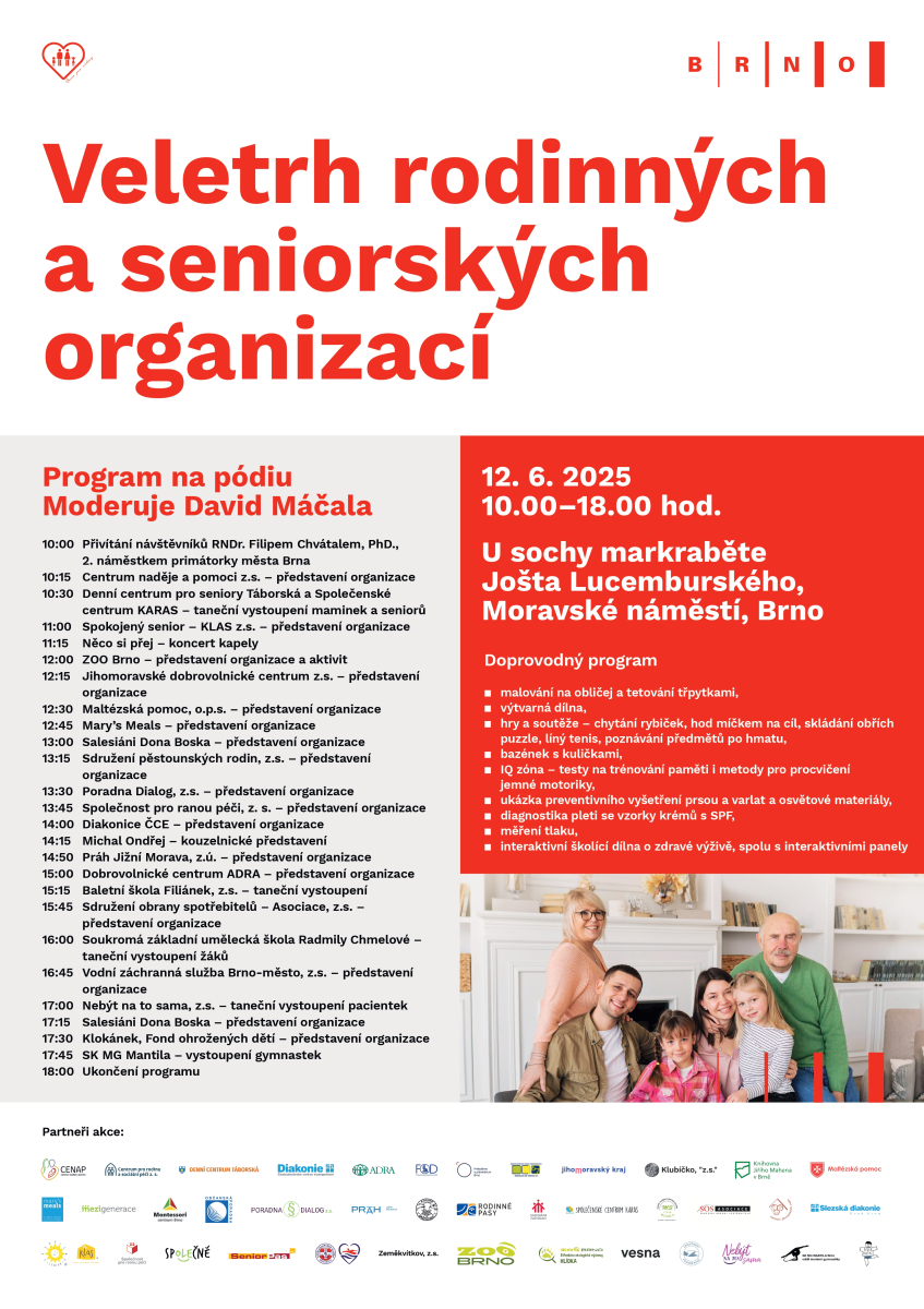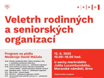 Už brzy se Brno stane místem, kde se setkávají informace, inspirace, podpora a zábava. Na chystaném veletrhu se veřejnosti představí více než 30 organizací, které aktivně působí ve městě a věnují se pomoci rodinám a seniorům. Na jednotlivých stáncích se návštěvníci dozvědí o užitečných službách, zajímavých aktivitách i možnostech spolupráce – vše na jednom místě a přehledně.