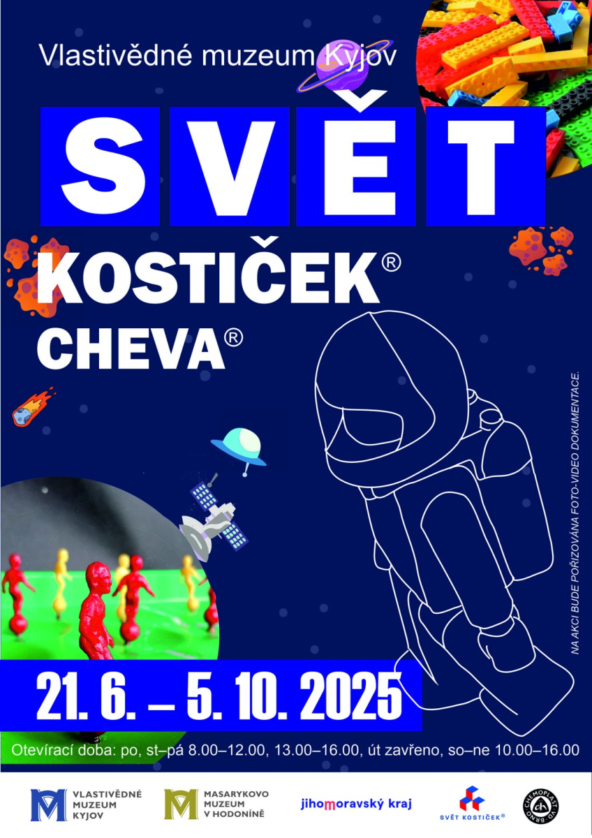 Od 21. června do 5. října 2025 bude Vlastivědné muzeum Kyjov hostit unikátní retro výstavu Svět kostiček® Cheva, představující slavné hračky a výrobky z produkce CHEMOPLAST BRNO (1945–2008) včetně legendární stavebnice CHEVA. Kromě rozsáhlé výstavy se návštěvníci mohou těšit i na dětskou hernu s moderními stavebnicemi Cheva z aktuální produkce. Přijďte si zavzpomínat, pohrát si a objevovat kouzlo českých hraček napříč generacemi!